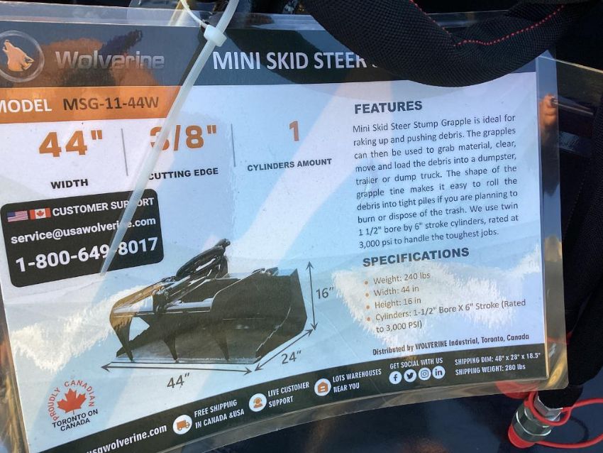 Wolverine Mini Skid Steer Mount Stump Grapple Bucket
